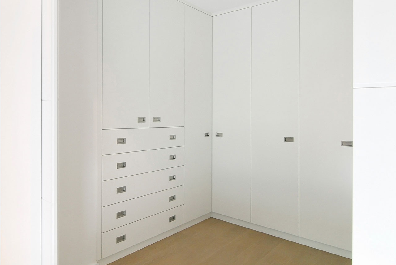 Viel Platz für viel Ordnung bietet diese 3-seitige, weiß lackierte Ankleide.